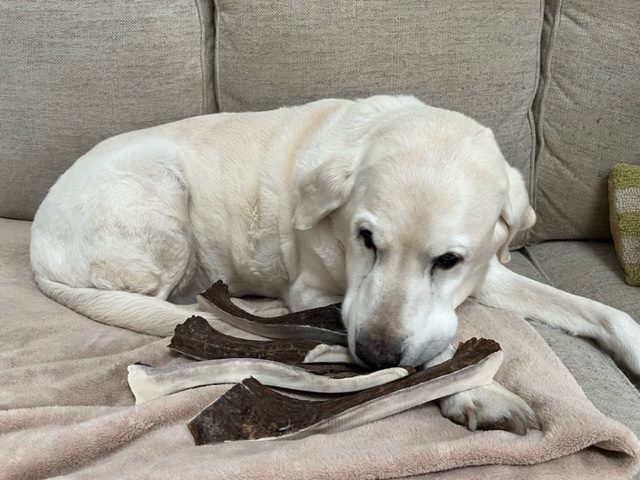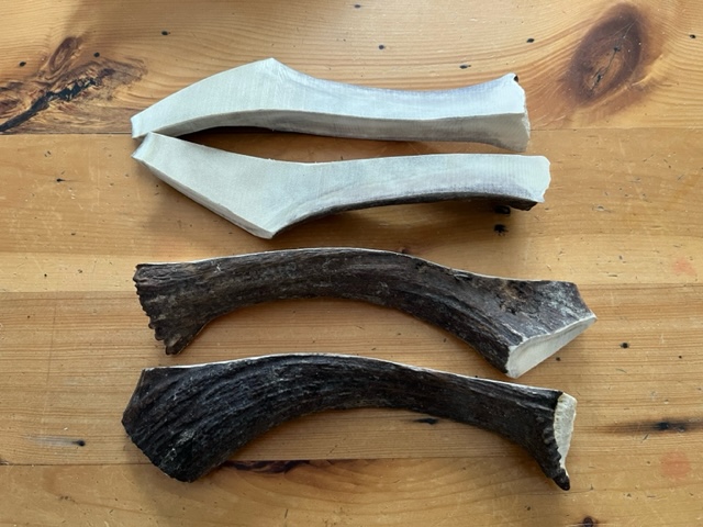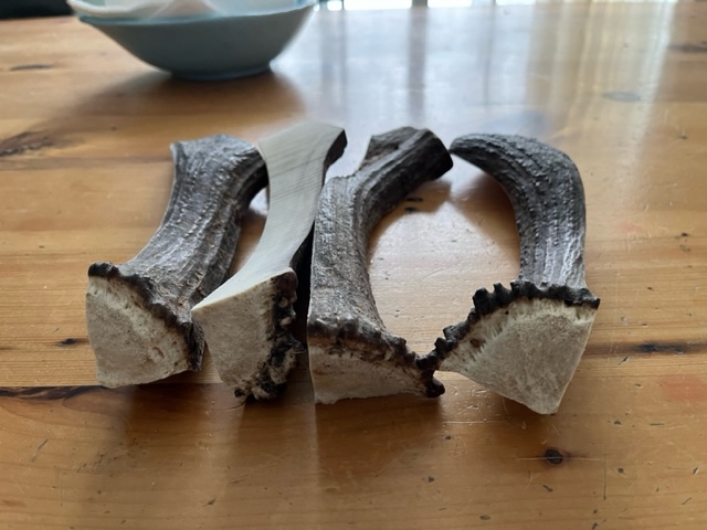 Medium Split Beams are a great option for medium and large dogs that are powerful chewers. A Split is a half of a whole beam with Burr and is made from the thickest and the hardest part of the antler. Turtle and I have done the hard part by splitting the whole beam so your dog can get to the yummy inside!! As all moose antlers are unique, our Beams will vary slightly in size, color and thickness.