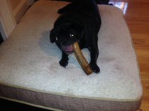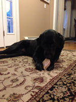 "Great toy for Casey. Doesn't make her gums bleed like the rawhide toys, they are super durable (the rawhides were gone in a matter of hours - we are on week 2!), and best of all, she LOVES it. She'll chew on that thing all day if we let her. We even have to take it away at night because the chewing keeps us up! No complaints at all. Great stuff."